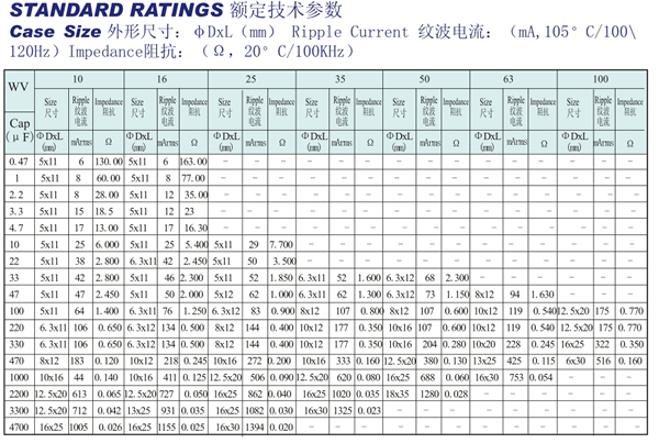 壽命:105℃ ,2000小時(shí)或85℃ ,8000小時(shí)